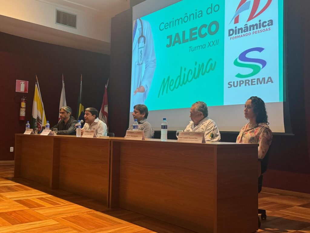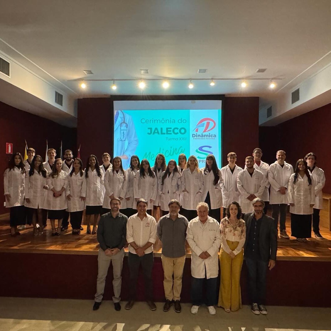 A Faculdade Dinâmica realizou, na última sexta-feira (20), a Cerimônia do Jaleco para os alunos do 1º período do curso de Medicina, em um momento marcado por emoção, simbolismo e celebração. O evento aconteceu no auditório da OAB Ponte Nova e reuniu familiares, amigos e colaboradores da instituição.