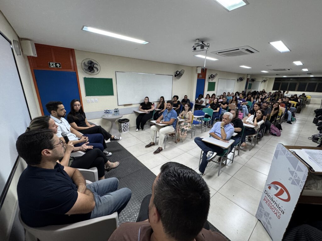 A Dinâmica promoveu, no último dia 3, um importante momento de discussão sobre a formação dos futuros profissionais da área de saúde. Acadêmicos dos cursos de Enfermagem, Fisioterapia, Nutrição e Psicologia participaram do evento “Diálogos em saúde – o profissional que queremos”.