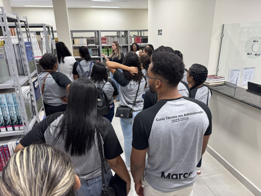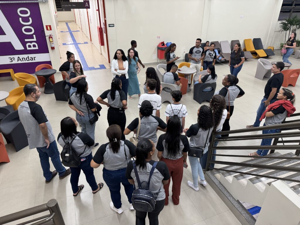 No último dia 14, acompanhados pelos professores Patrícia Soares de Almeida e Cloves Bayão Júnior, os estudantes puderam conhecer de perto a estrutura da instituição, participando de um tour pelos principais espaços, como biblioteca, salas de aula, corredores e mezanino.