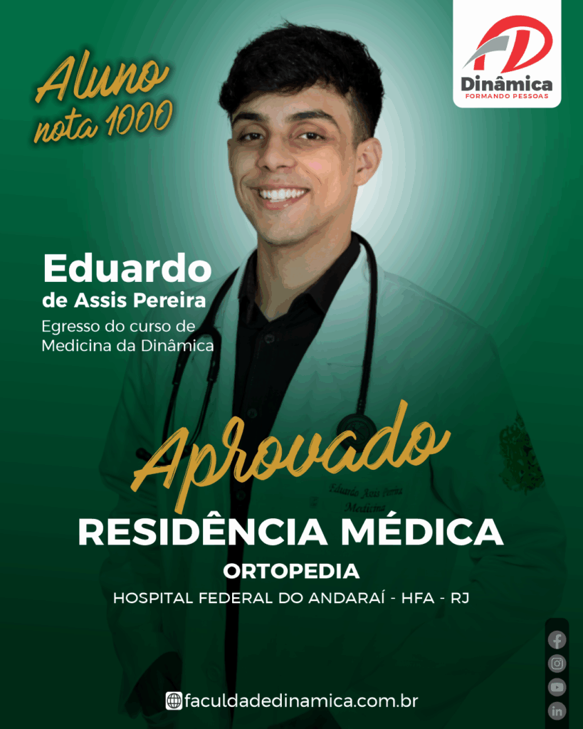 Essa conquista demonstra, mais uma vez, a solidez do compromisso da Faculdade Dinâmica com a formação de médicos preparados, éticos e capacitados para atuar nos mais altos níveis da medicina brasileira.