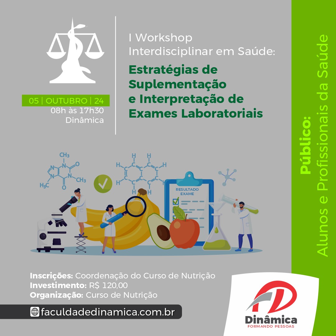 Com a temática “Estratégias de suplementação e interpretação de exames laboratoriais”, o evento é uma promoção do Curso de Nutrição e aberto a acadêmicos e profissionais da área da saúde. As VAGAS são LIMITADAS, então já garanta a sua o quanto antes! 😉