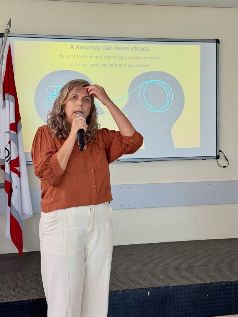 A programação contou ainda com a palestra “Cultivando o bem-estar”, ministrada por Ana Paula Aleixo Lana, que reforçou a importância do cuidado com quem ensina e aprende.