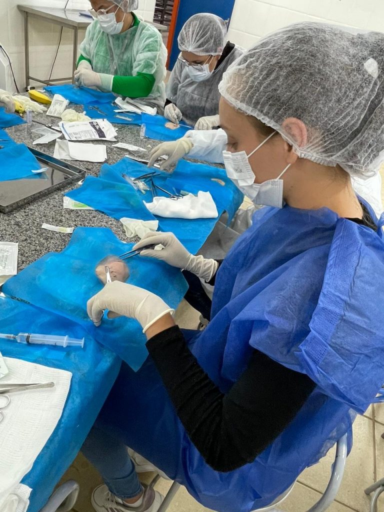 Ministrada pelo Professor Dr. Fábio Braga Teixeira, a capacitação foi dividida em dois momentos: parte teórica, na sala de aula, e parte prática, no Laboratório de Anatomia.
