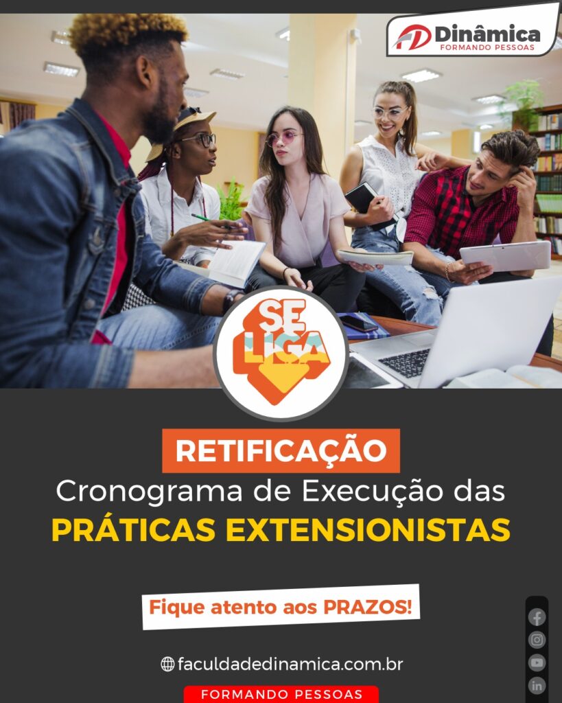 A Faculdade Dinâmica torna pública a retificação do Cronograma das Práticas Extensionistas para o segundo semestre de 2025.